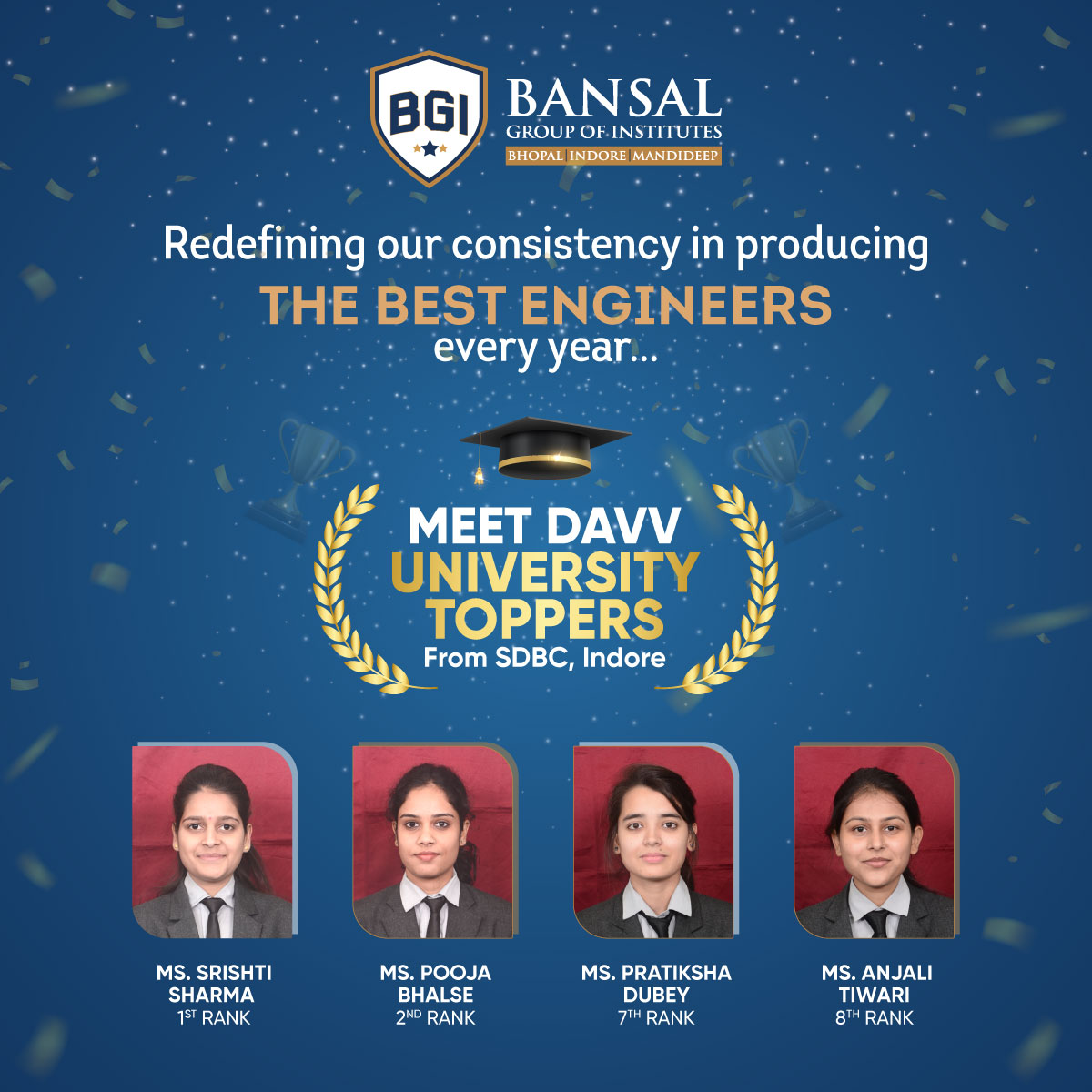 Sushila Devi Bansal College of Technology is a private engineering and management institute imbued to nurture global technocrats and entrepreneurs, with the spirit of innovation, humanity, and zest to create a difference for the betterment.